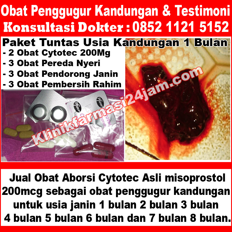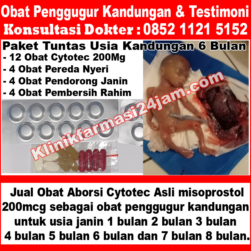 - Paket 6 Bulan : 12 Cytotec + 4 Pendorong Janin + 4 Pereda Nyeri + 4 Pembersih Rahim.