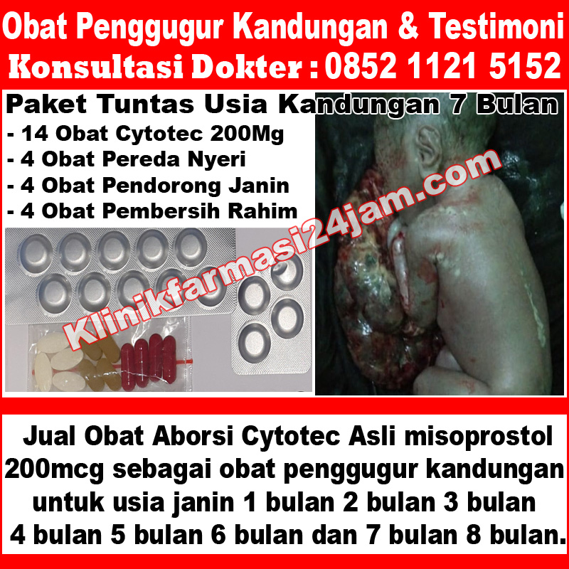 - Paket 7 Bulan : 14 Cytotec + 3 Pendorong Janin + 4 Pereda Nyeri + 4 Pembersih Rahim.