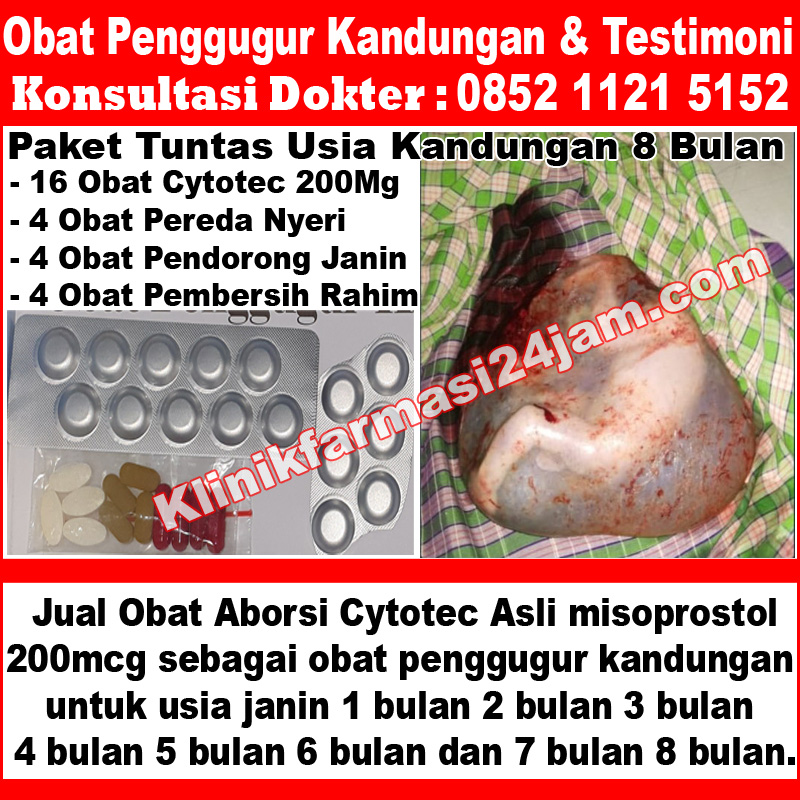 - Paket 8 Bulan : 16 Cytotec + 4 Pendorong Janin + 4 Pereda Nyeri + 4 Pembersih Rahim.